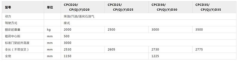 G2系列2-3.5噸內燃平衡重式叉車技術參數: